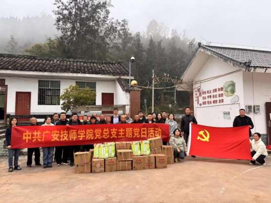 为深入贯彻落实省人社厅关于技工院校与39个欠发达县域“一对一”结对帮扶工作的决策部署,切实发挥技工院校服务区域经济社会发展的重要作用。2025年12月6日,中共广安技师学院党总支副书记唐元刚带队,率学院综合部(党群工作部)、教学实训与就业部、招生与学生工作部(团委)、培训鉴定部等部门负责人组成帮扶小组,带领全体党员同志赴巴中市南江县,开展了以“党建引领促发展,结对帮扶谱新篇”为主题的党日活动暨“一对一”结对帮扶活动。