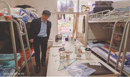 此外,老师们还重点开展了意识形态安全排查,深入了解学生思想动态,关注网络言论及宿舍文化导向,排查是否存在非法宗教渗透、不良信息传播等情况。唐元刚副书记强调,寝室是学生思想政治教育的重要阵地,要引导学生自觉抵制不良思潮,树立正确的世界观、人生观和价值观。